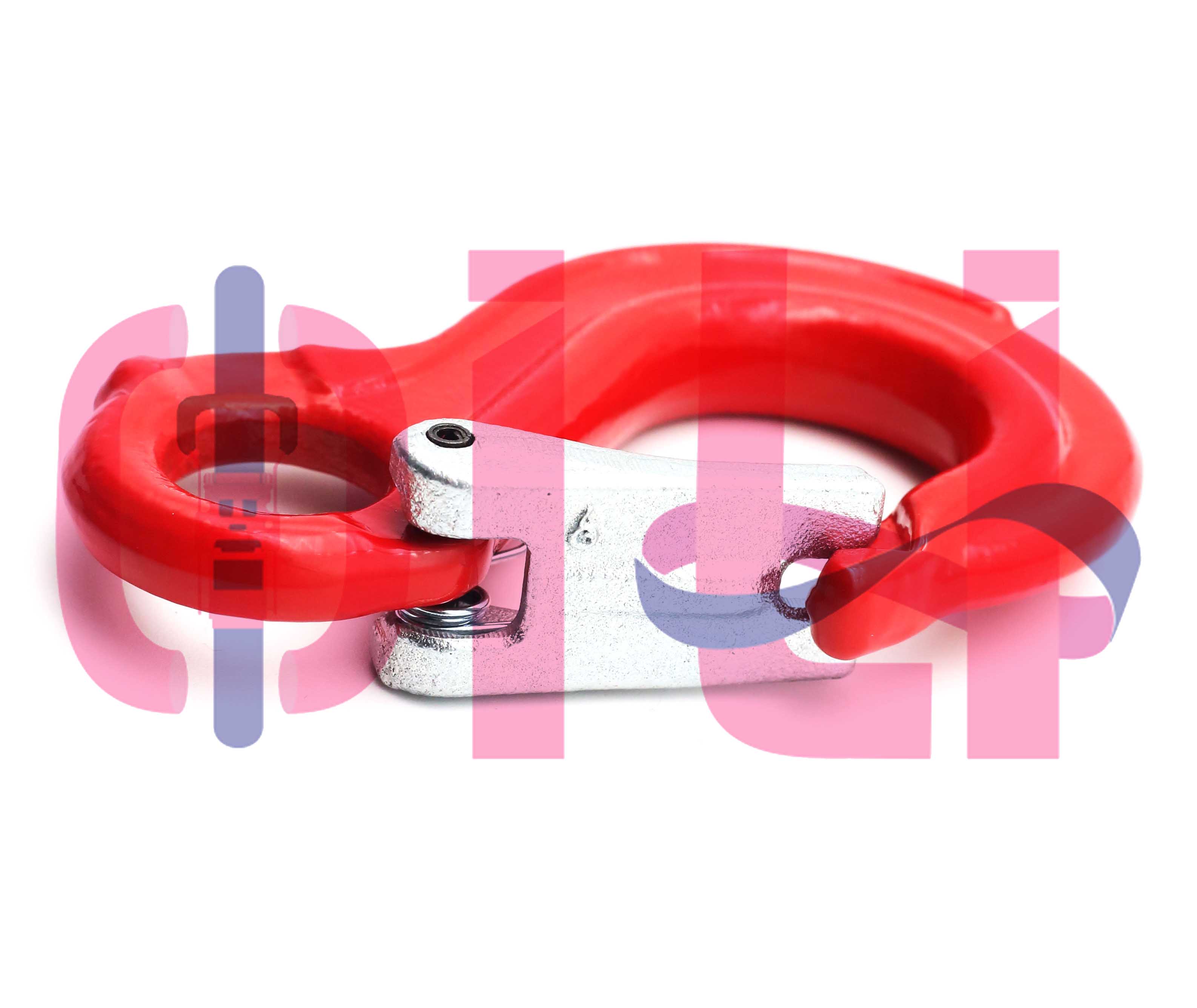 Det bruges ofte sammen med andet løftegrej for at skabe en sikker løfteenhed.Selvlåsende krog: Selvlåsende kroge har en lås eller låsemekanisme, der automatisk går i indgreb, når belastningen påføres.
